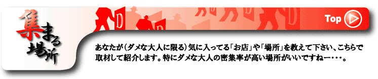 | |Top|最近ダメだった人|えらいもん見たで|ダメな大人が集まる場所|トドの部屋|ダメ人間の独り言|Link|Mail| |