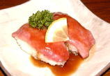 ■←食べた事あります?ぶちウマイでほんま。「牛タンのにぎり」ですわ、もう最高!肉料理から魚料理まで幅広いっすよ、ココは。スタッフもネタもぜ〜んぶ「活き」がエエ。「粋活きしてます!一鉄です。」 ■お店の情報 ittetsu@h.do-up.com |