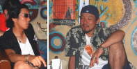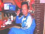 ●我らの「汁」兄さんが熱く語っている時に、 寝ながら「聞いてるフリ」をしているア○ー君です。 良く見てください、少し笑ってます。しかし笑う場所は少し前で、この時は ちょっとマジメな話に入ってまして・・・・ とても疲れていたのでしょう、でも話もおもろかったのでしょう。 すごく良く解ります、経験あります、眠いときは我慢できないよね〜。 |